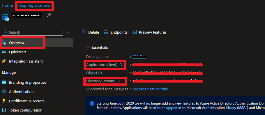 <figure><img src="https://content.gitbook.com/content/q3QSrBULrPPYb4ulf7mJ/blobs/yOri5tAjEkw18RZSiya4/image.png" alt=""><figcaption><p>App Registrations values</p></figcaption></figure>