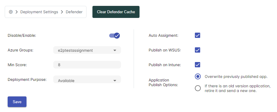 Disable/Enable: This option enables or disables Easy2Patch's Defender integration.