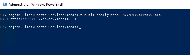 wsusutil configuressl wsusserver.domain.comwsusserver.domain.com address should replaced with your wsus servers FQDN name.