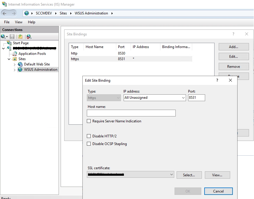 To deploy 3rd party updates with WSUS and/or SCCM, SSL configuration on WSUS is required. Below are the steps to be done on WSUS and SCCM.